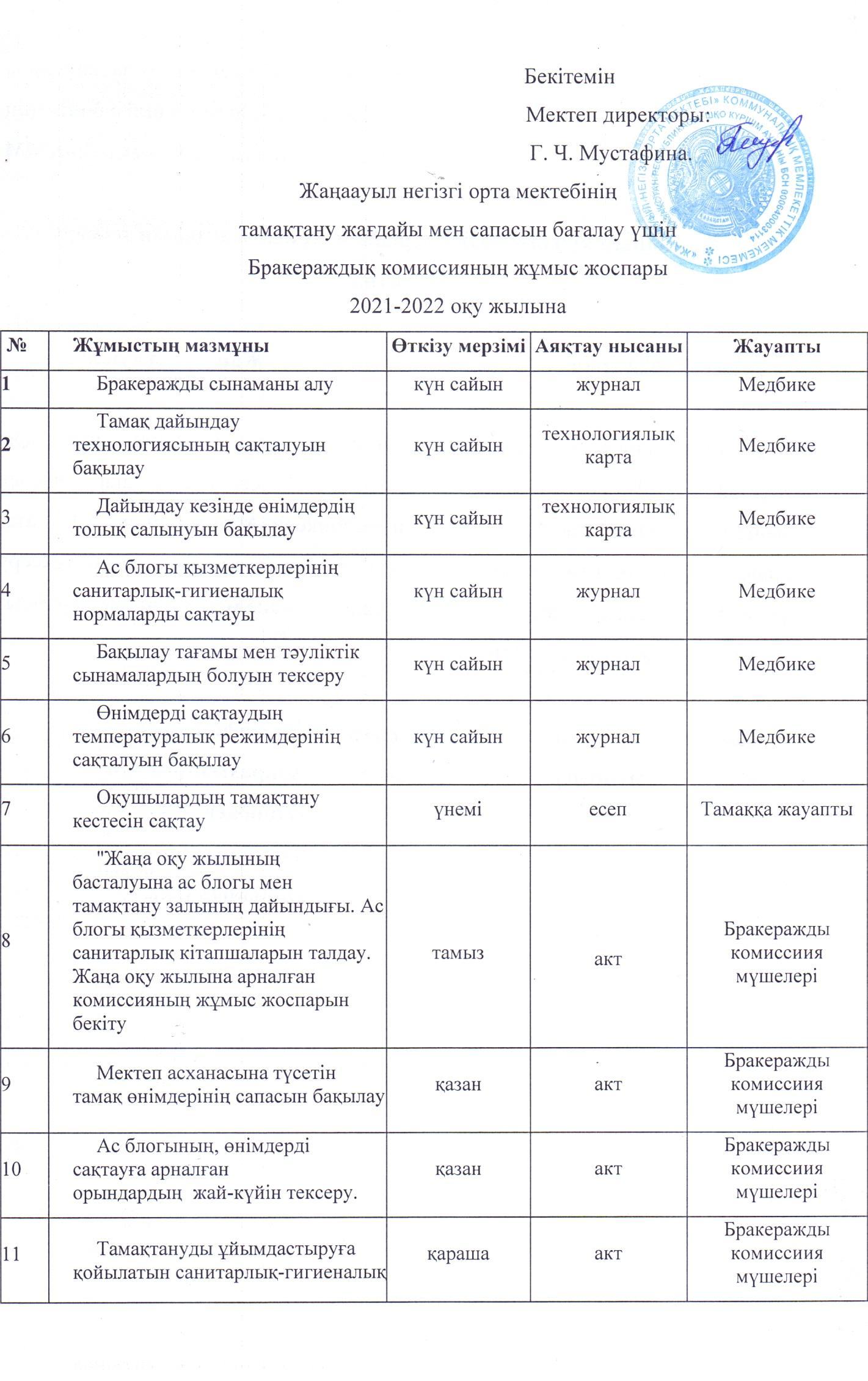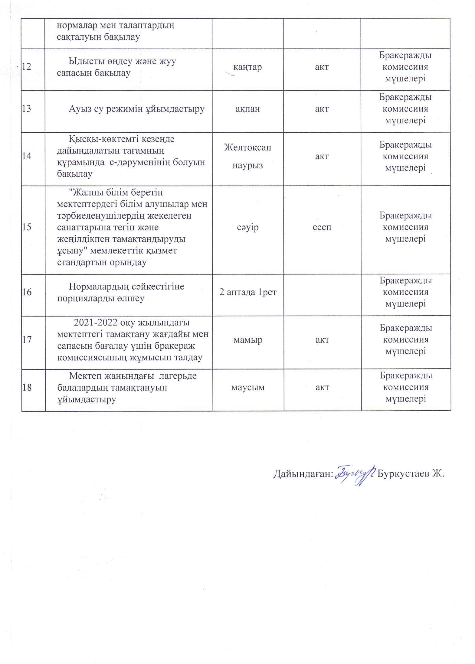 Бракераждық комиссияның жұмыс жоспары 2021-2022 оқу жылы